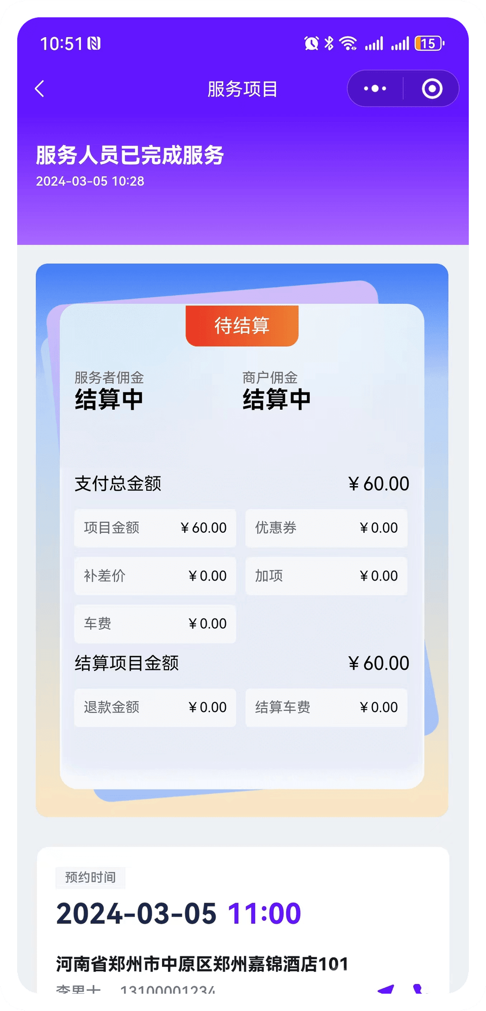 根據自己的工作休息時間,合理的安排服務上門的時間段,減少了繁瑣的溝通環節