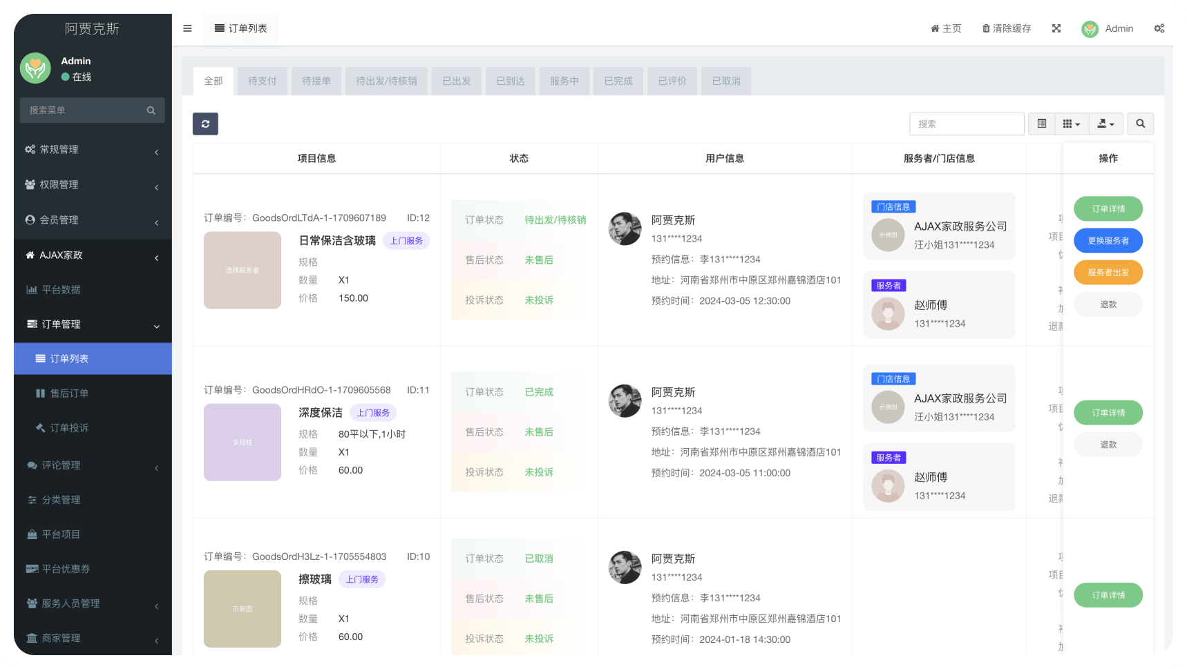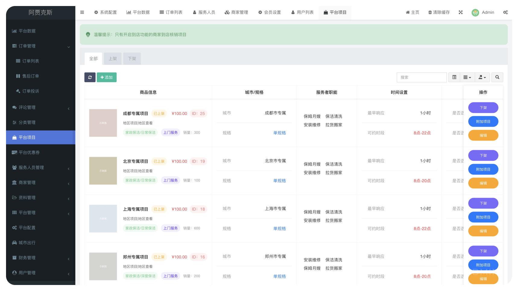 家政上門服務管理系統(單商戶+多商戶、多城市)