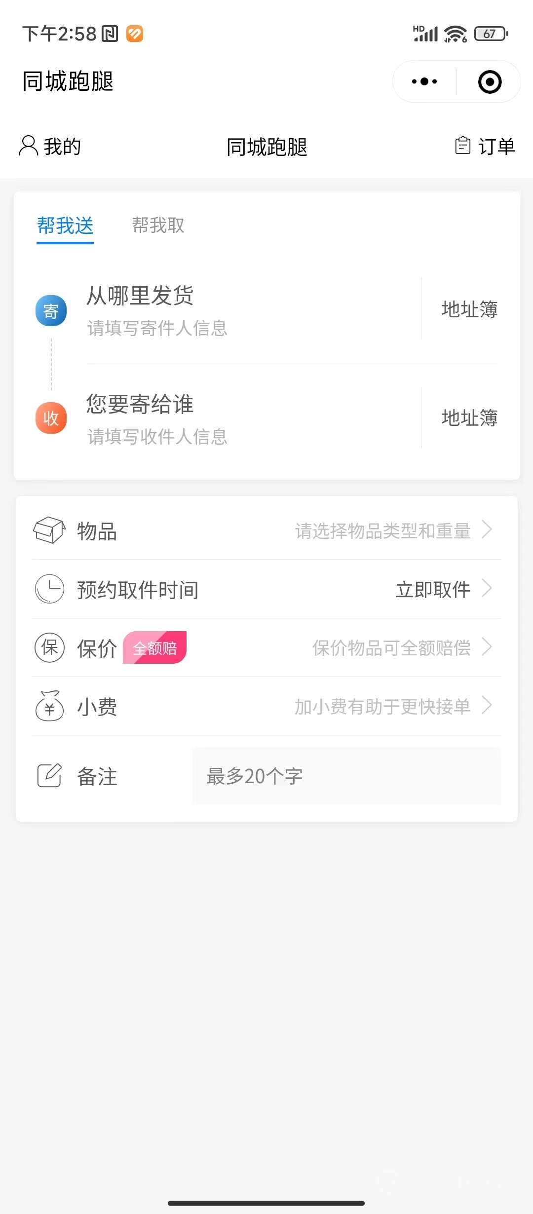 支持幫取、幫送模式,包含用戶端、騎手端、運營后臺,支持一鍵接單/搶單, 為跑腿團隊提供技術解決方案