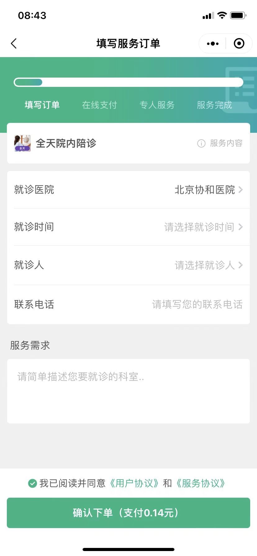 下單流程簡單,針對(duì)不同類型服務(wù)只需填寫相應(yīng)必要的信息即可快速下單,陪護(hù)師接單后與客戶電話溝通安排服務(wù)