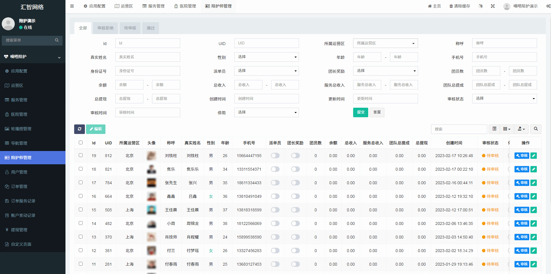 各運(yùn)營區(qū)可獨(dú)立設(shè)置分成比例,每單收益可設(shè)置比例劃分給陪護(hù)師、團(tuán)隊(duì)長、推廣者、總部、運(yùn)營區(qū)