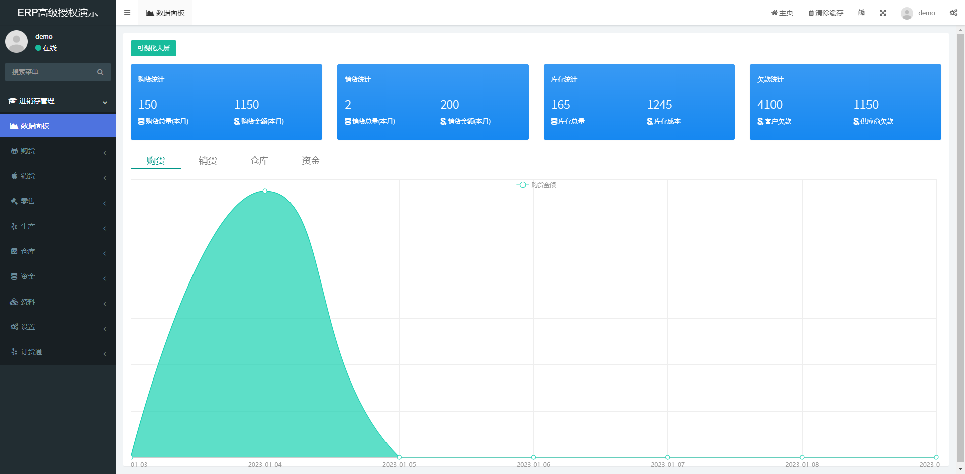 幫助中小企業實現ERP管理規范化,此系統能為你解決五大方面的經營問題:1.采購管理 2.銷售管理 3.倉庫管理 4.資金管理 5.生產管理,適用于:服裝鞋帽、化妝品、機械機電、家具裝潢、建材行業、快銷品、母嬰用品、辦公用品、汽配汽修、生鮮農貿、手機通訊、數碼家電、醫藥用品、制造業、信息技術服務行業等