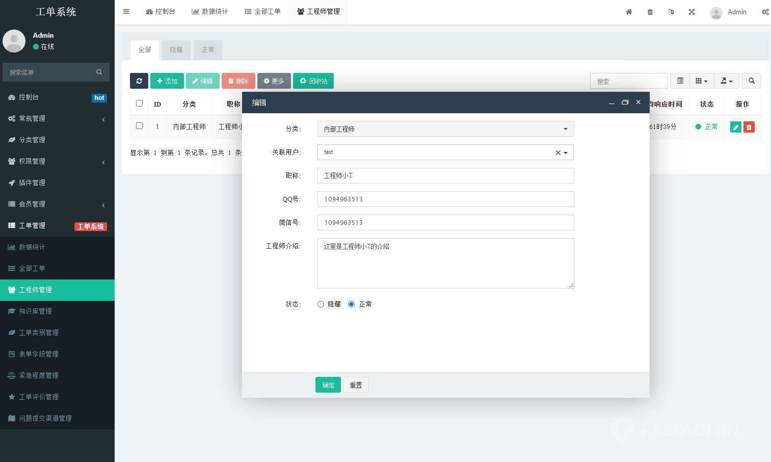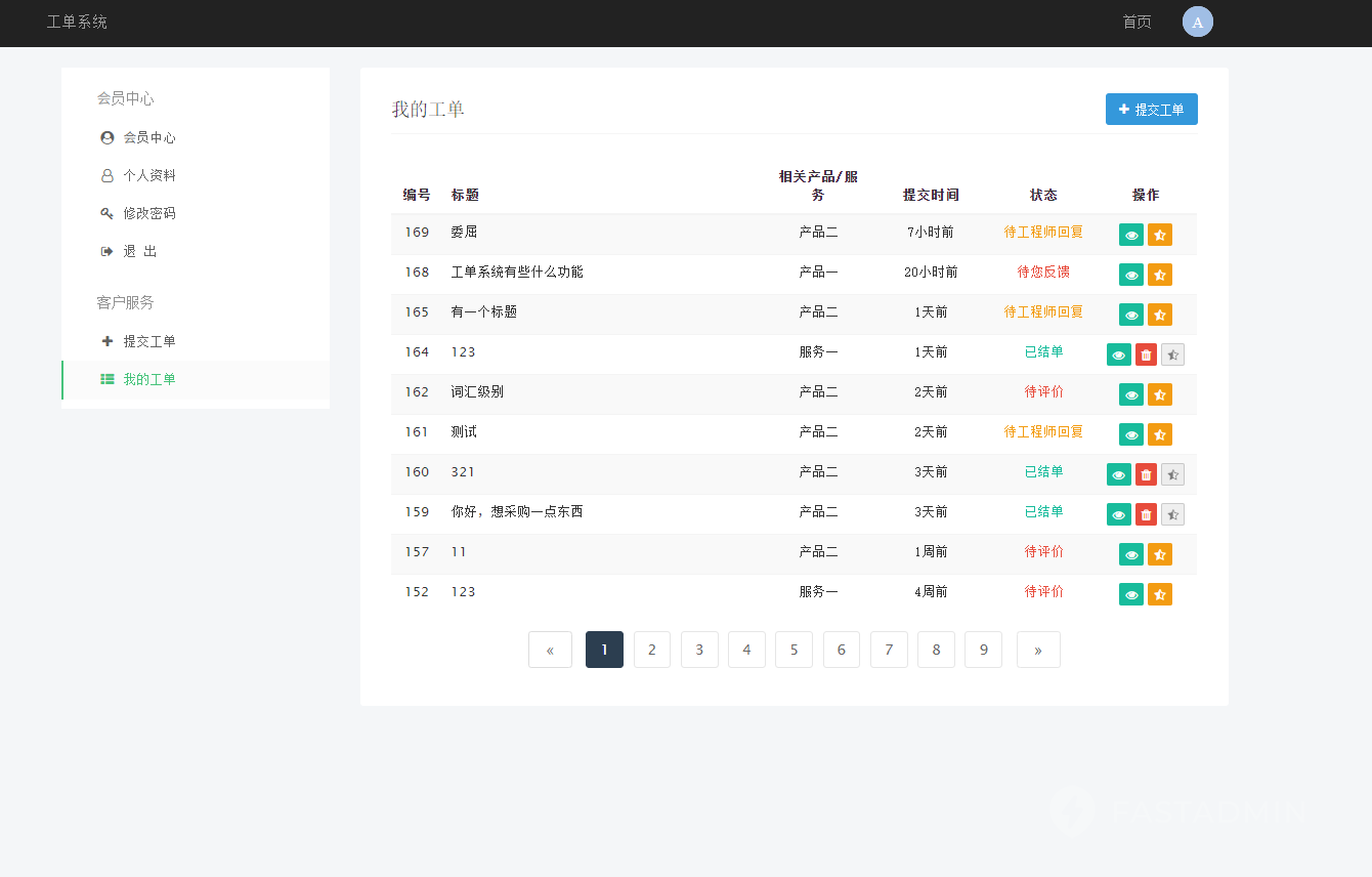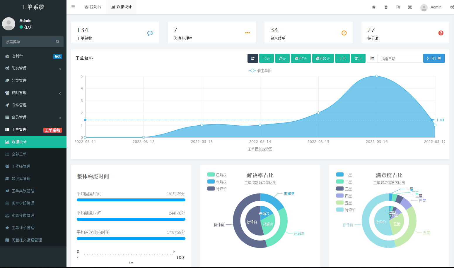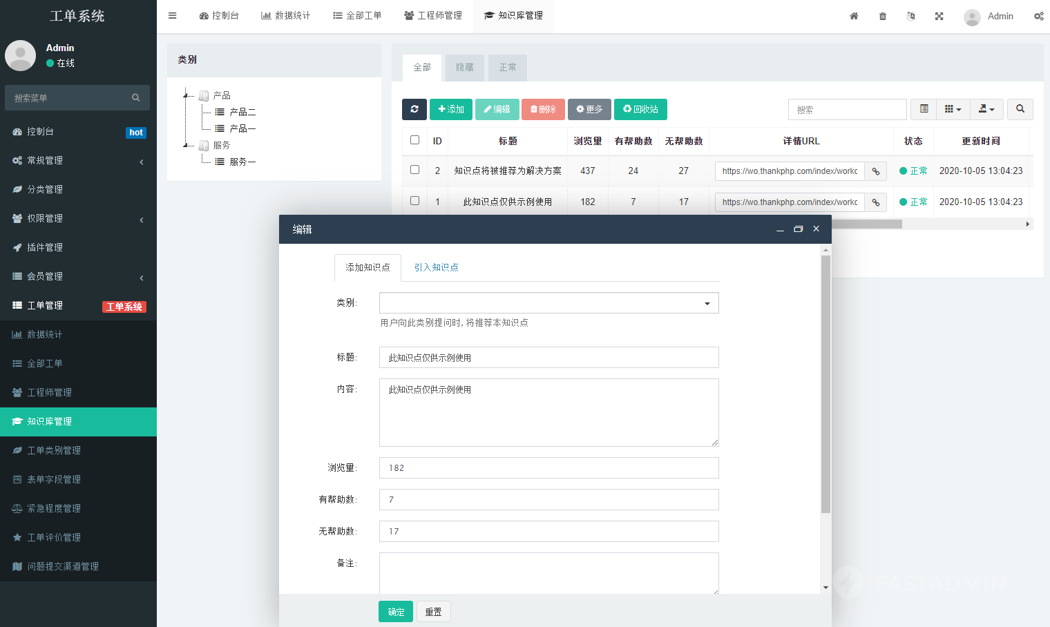 支持多工程師分配、知識庫、工單評價、自定義字段、工單通知(短信&郵件)、自定義產品或服務等功能