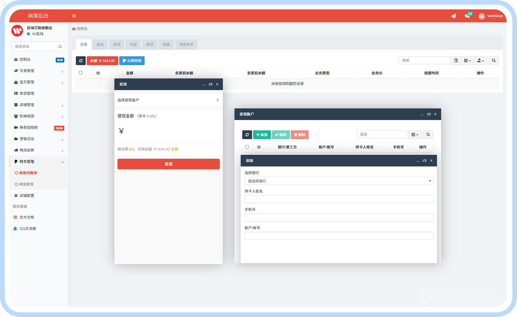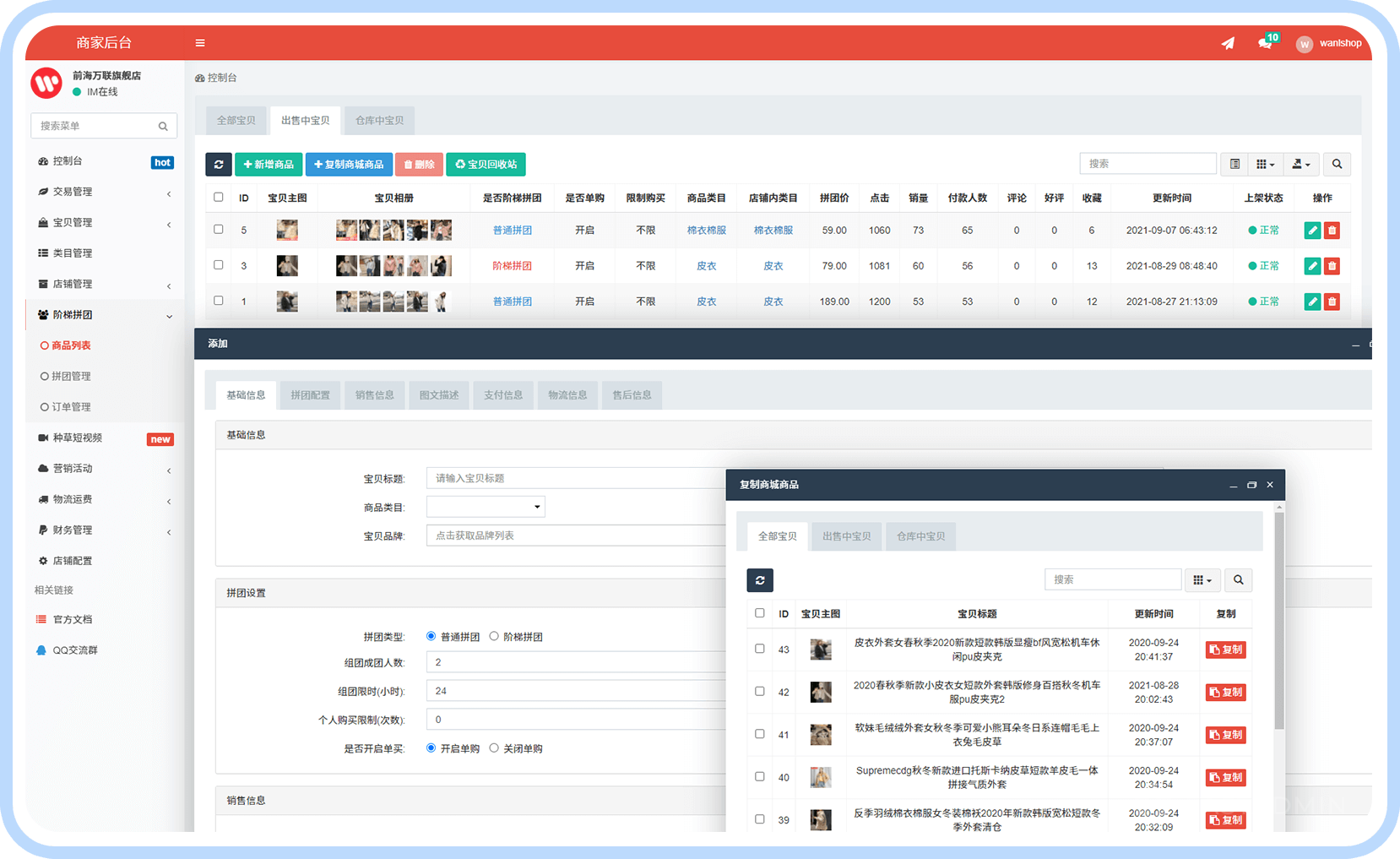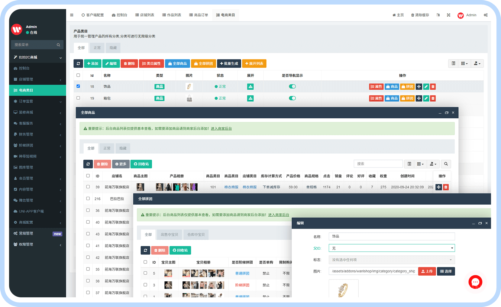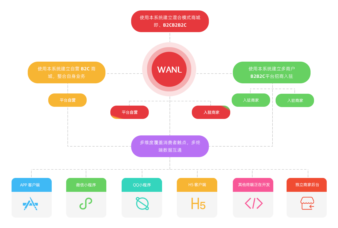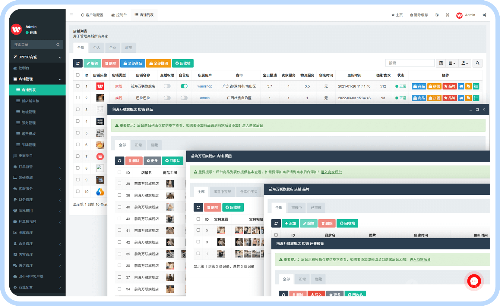 多終端數據統一互通,獨立商家后臺,一鍵管理店鋪數據打造多終端生態閉環
