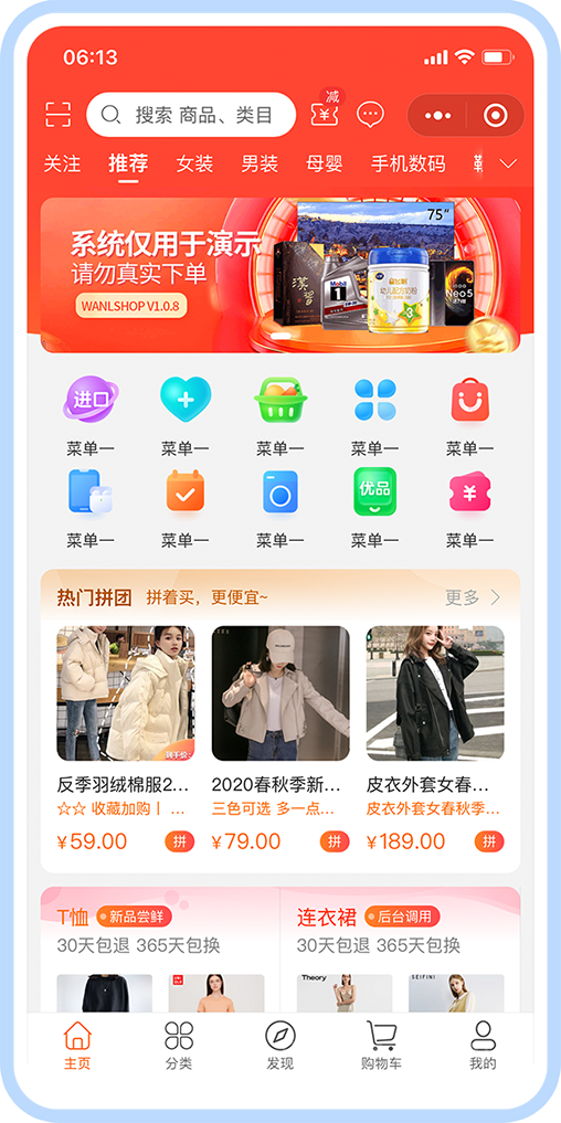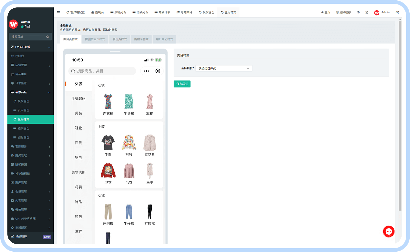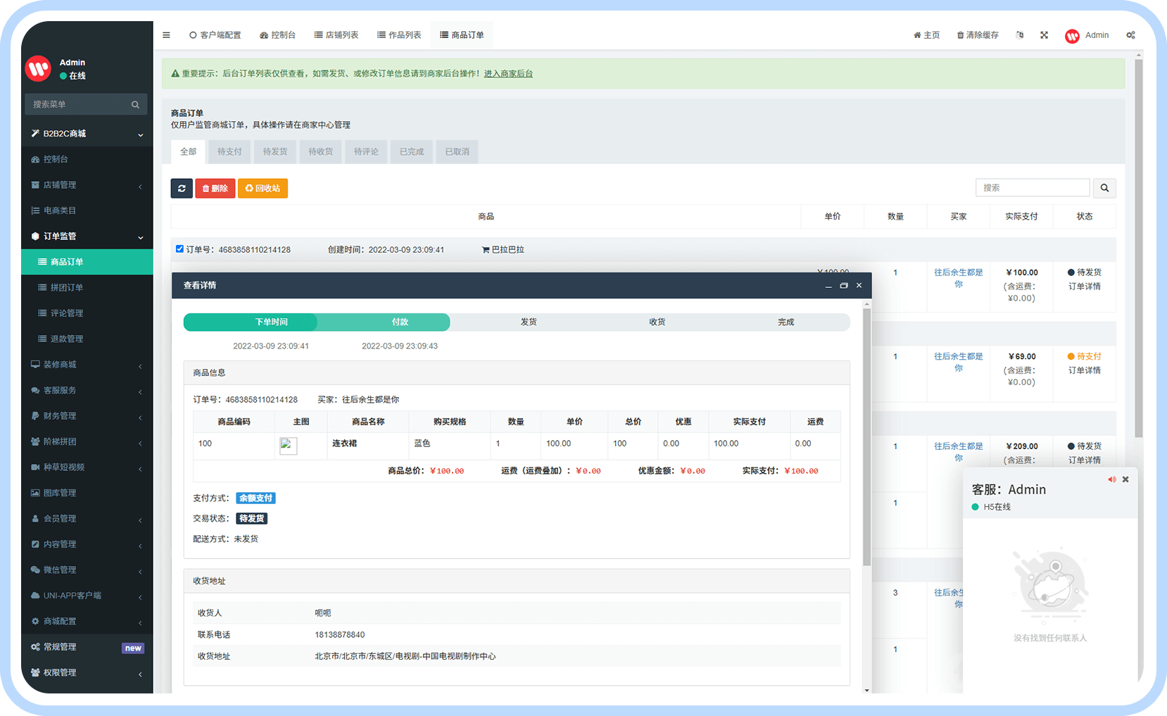 多用戶商城系統擁有多種運營模式B2B2C/B2C,內置獨立商家后臺、商城裝修、短視頻、社區種草、全終端直播、階梯拼團,智能客服等功能