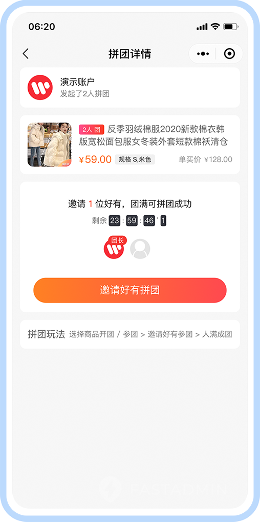 自定義人數拼團、直購、不同階梯人數不同優惠金額拼團