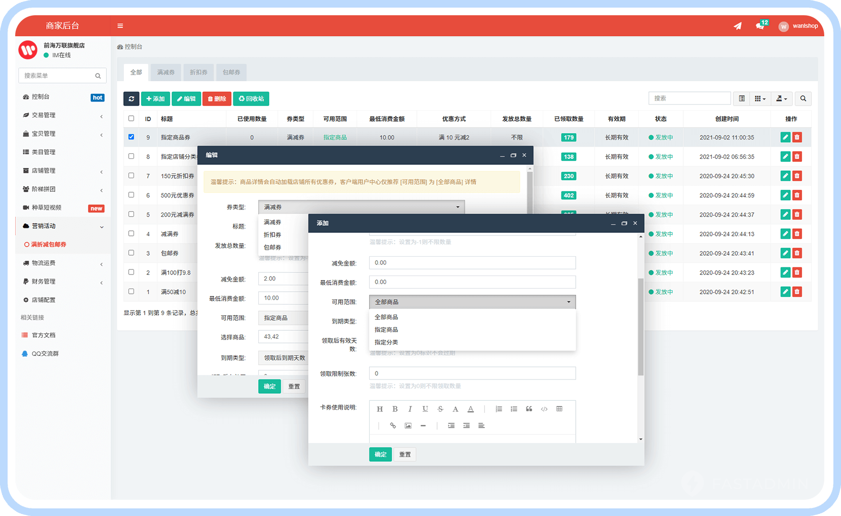 一款運營級電商平臺,她擁有店鋪入駐B2B2C、自營B2C的功能,還內置了直播社區種草IM即時通訊多類型優惠券等功能...