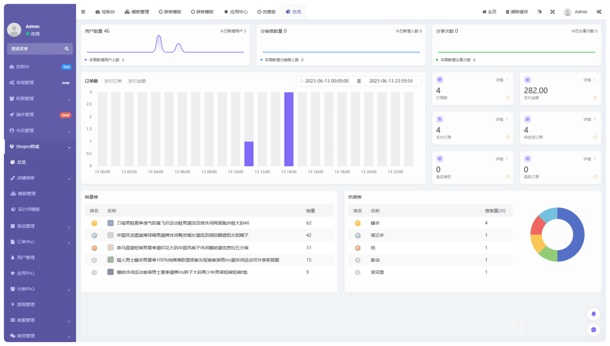 用戶增長趨勢、分享活躍趨勢、訂單數據統計、銷量榜、熱搜榜等常用高性能圖表