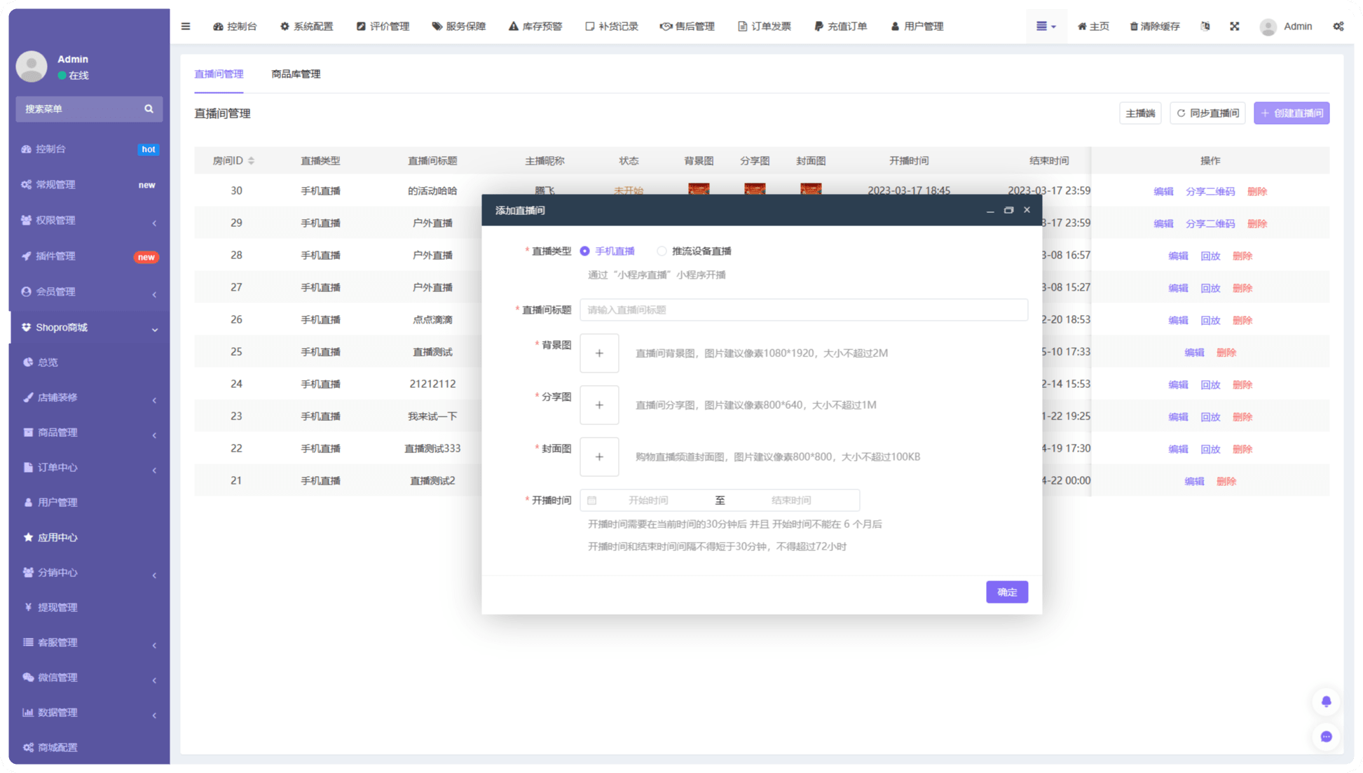 對接微信小程序直播,可直接在后臺創建直播間,添加商品