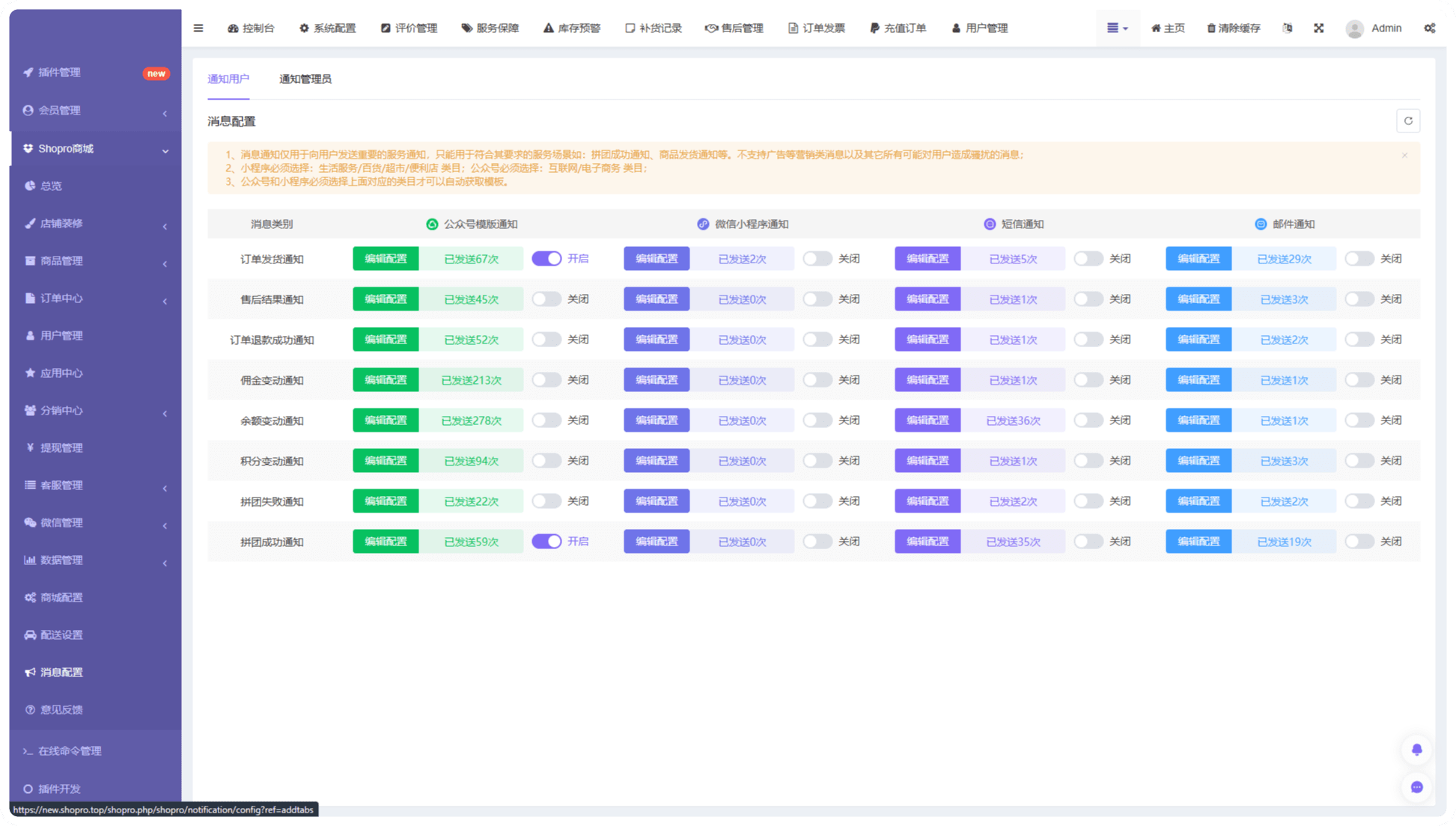 設置商品庫存的閾值,實時站內信方式提醒庫存告急