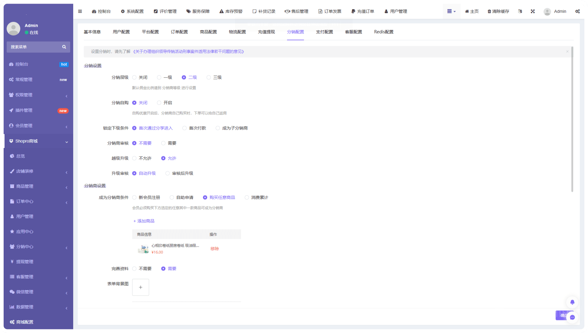 3.預置多種成為分銷商的條件