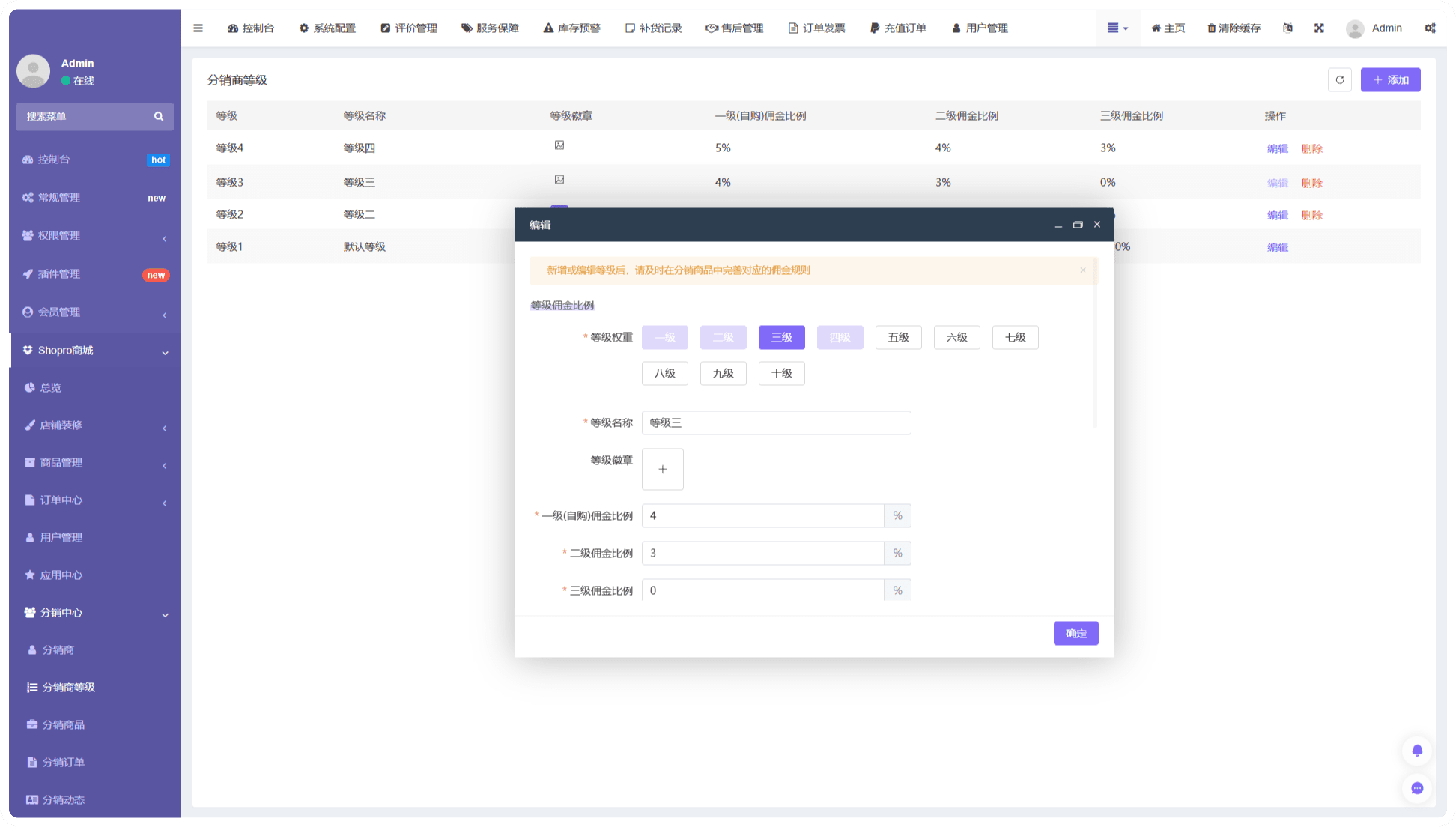 1.配置最多10級的分銷商等級