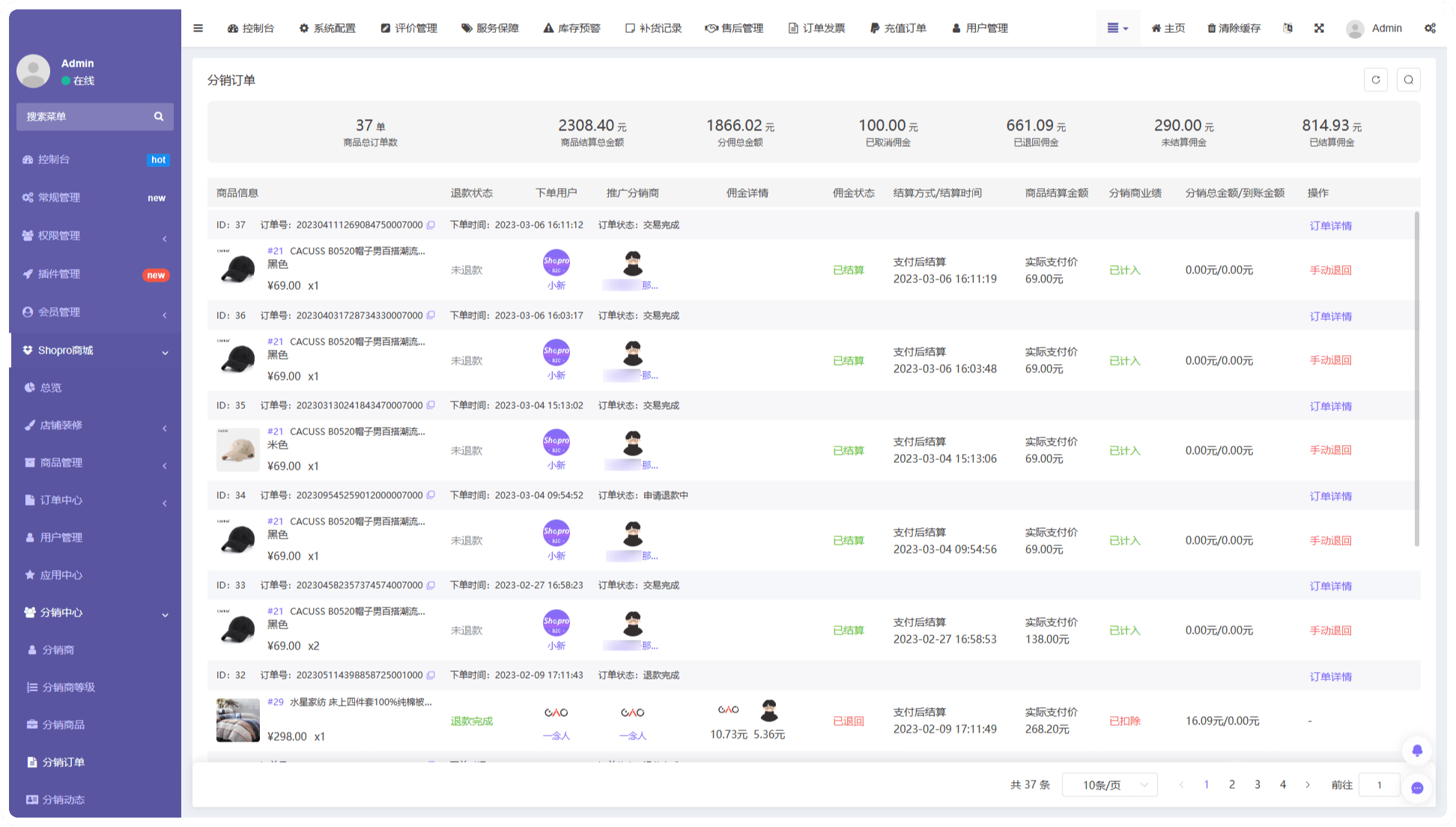4.可提前針對某訂單或某分銷商提前結算傭金和扣除傭金操作