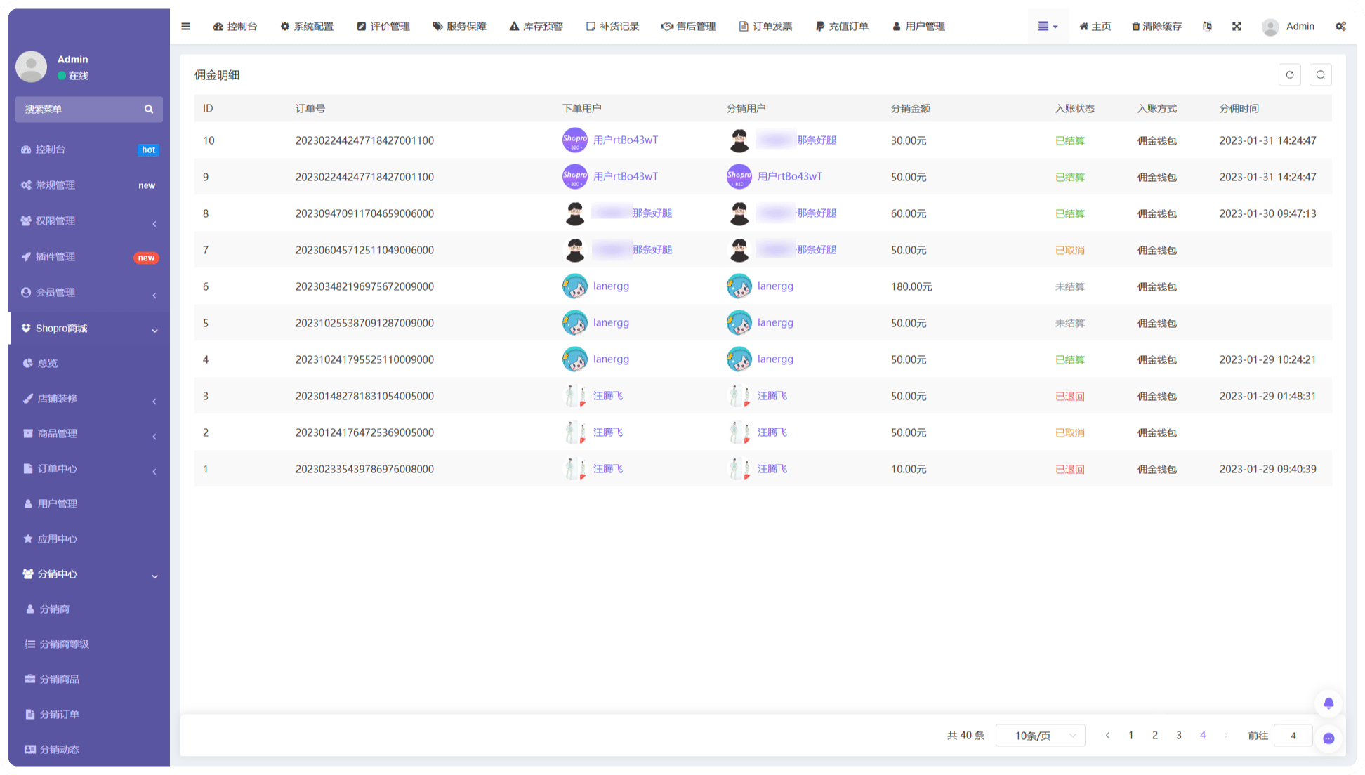 3.可修改未結算分銷訂單的傭金金額