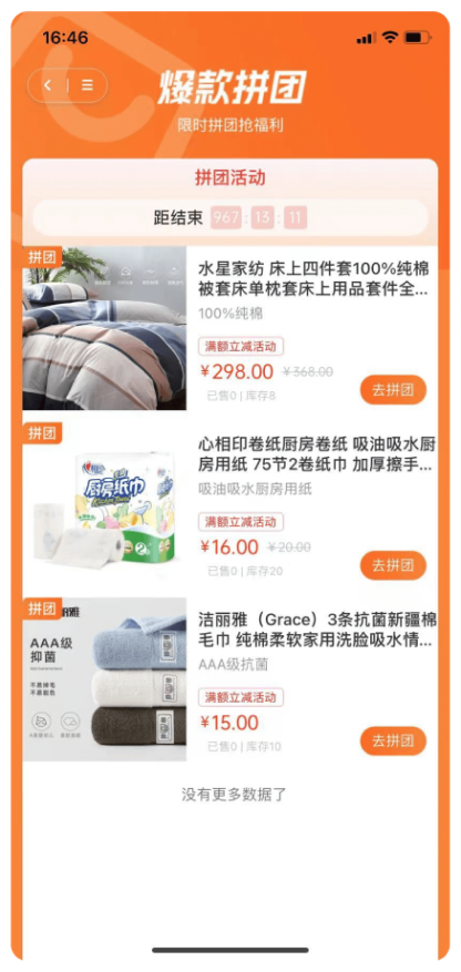 一鍵邀請好友拼團,可自由設定成團人數、團長價、階梯價、限購與分銷方案